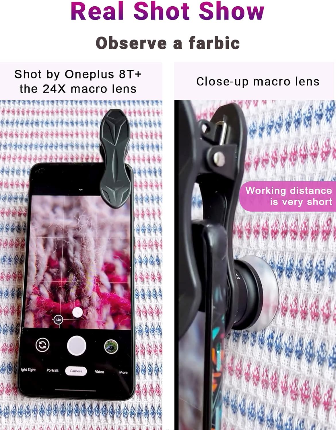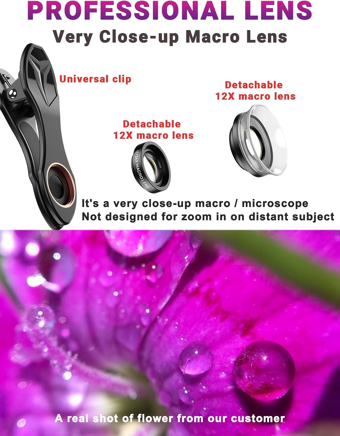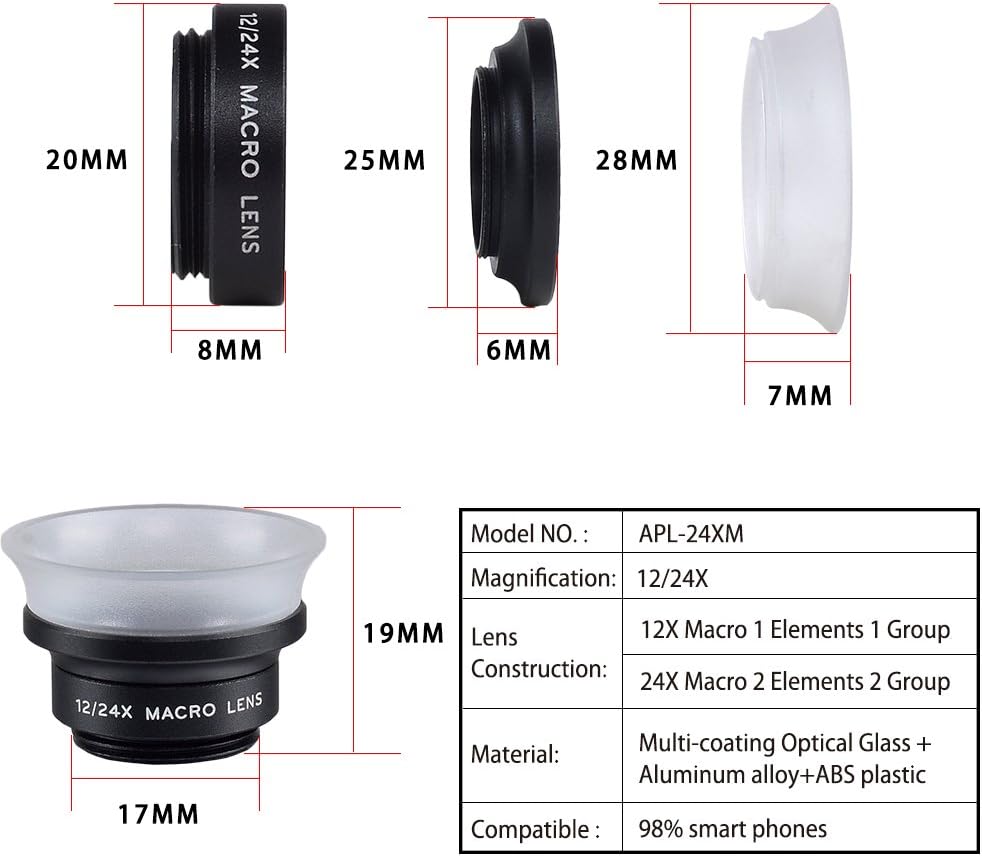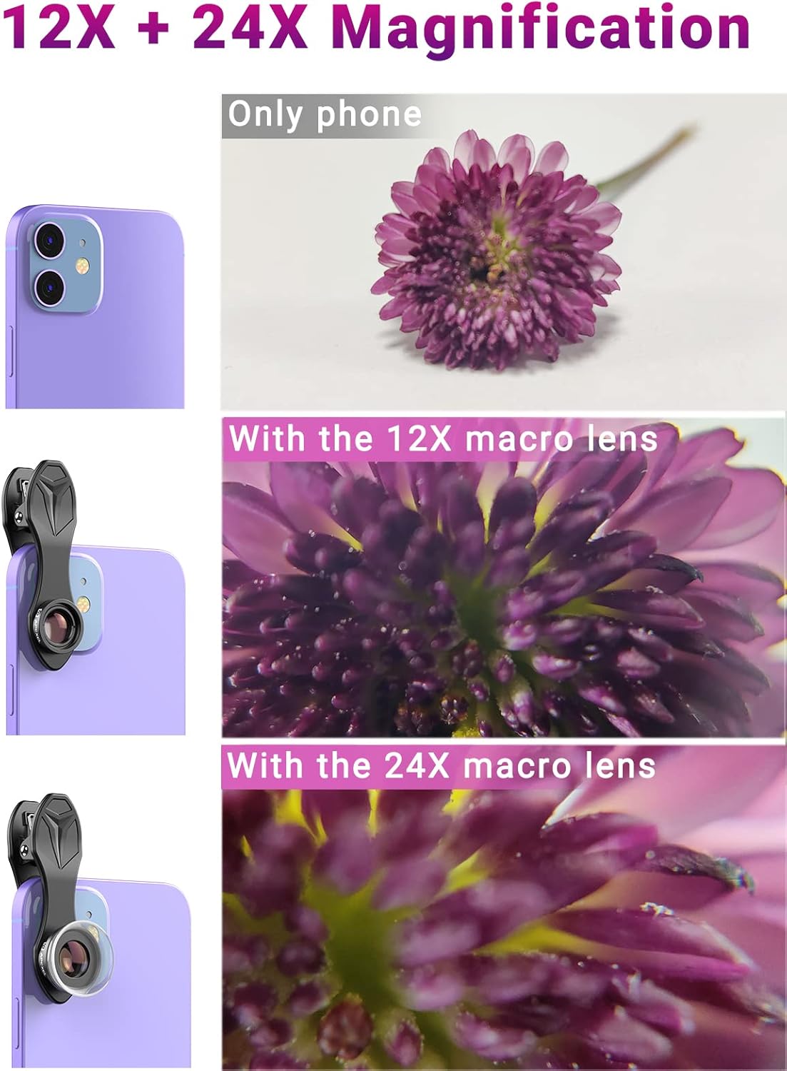 MicroEye 12X / 24X Macro Lens, Macro Lens for iPhone with Universal Clip, HD Phone Macro Lens Attachment for Phone Camera, iPhone Photograph Accessories Fits for All Cellphone and Pads Mini Microscope
