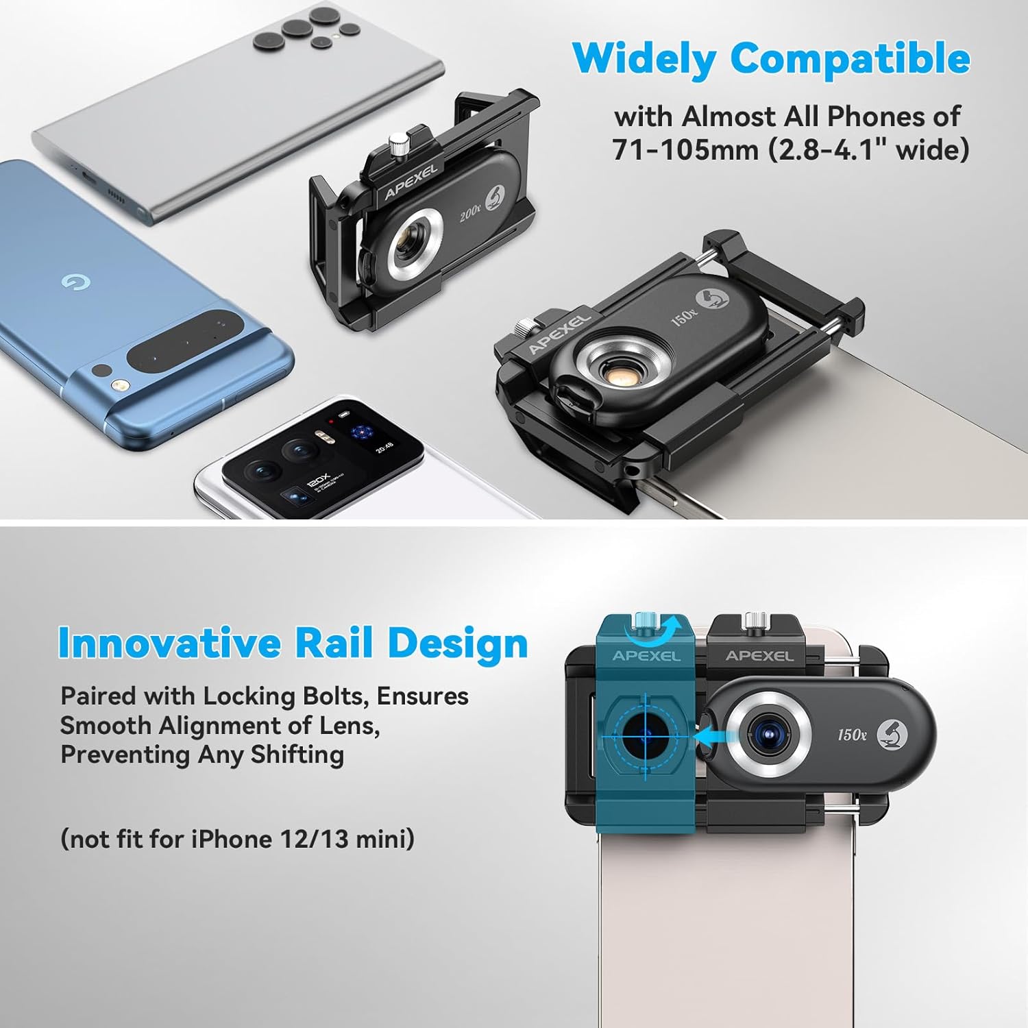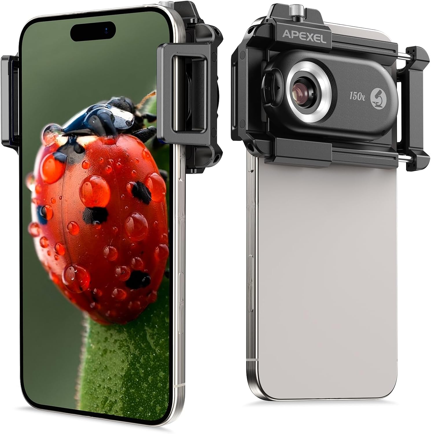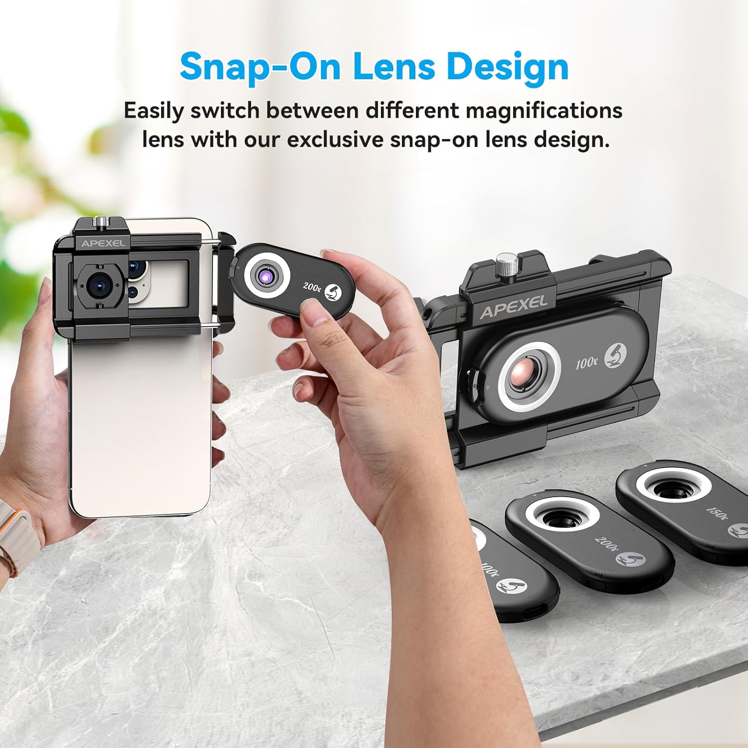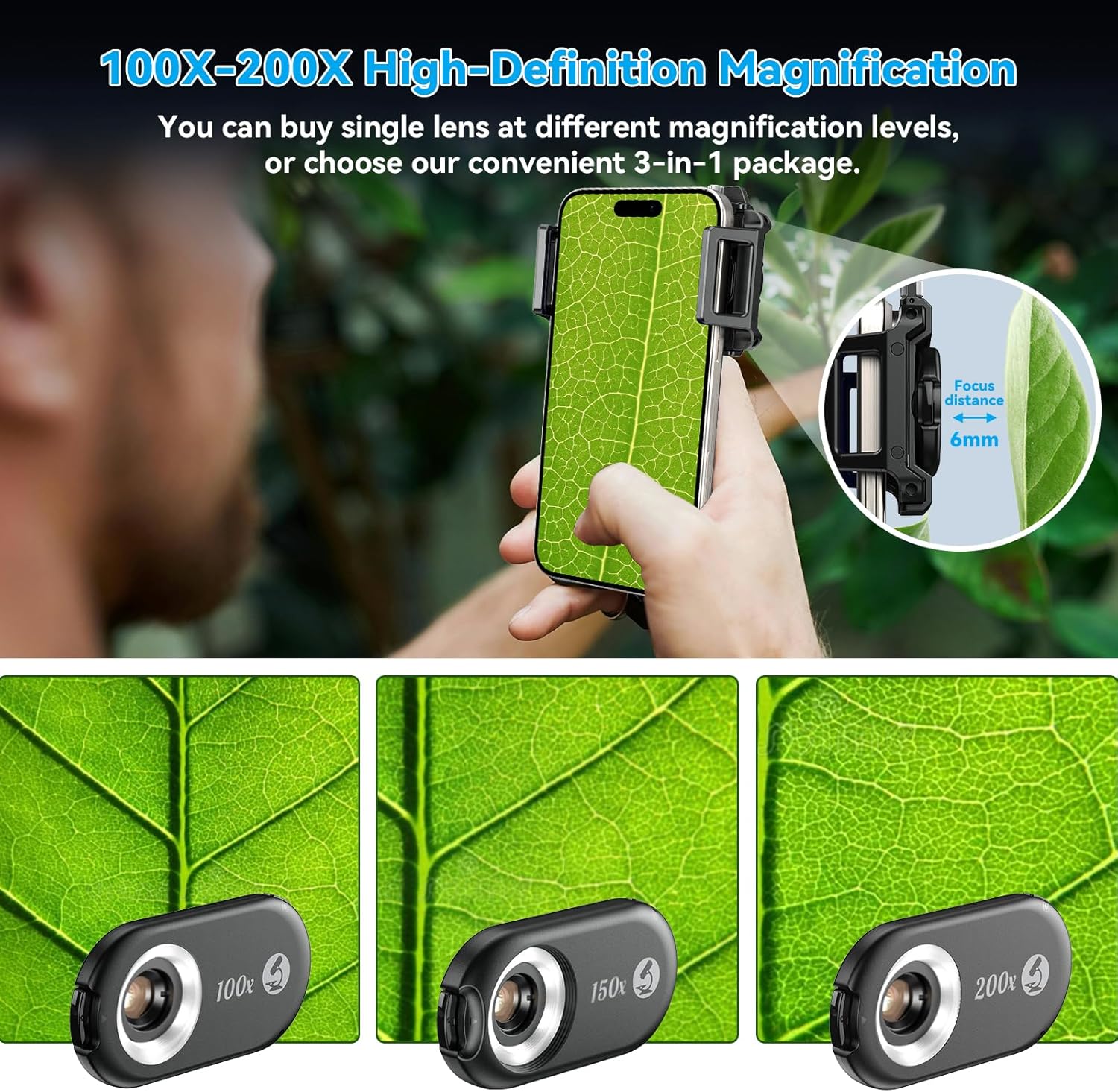MicroEye 3-in-1 Phone Microscope Lens, 100X/150X/200X Nano Zoom Phone Micro Lens for Android/iPhone with LED UV Light/CPL/Universal Clip, Mini Pocket Digital Microscope, Portable Smartphone Camera