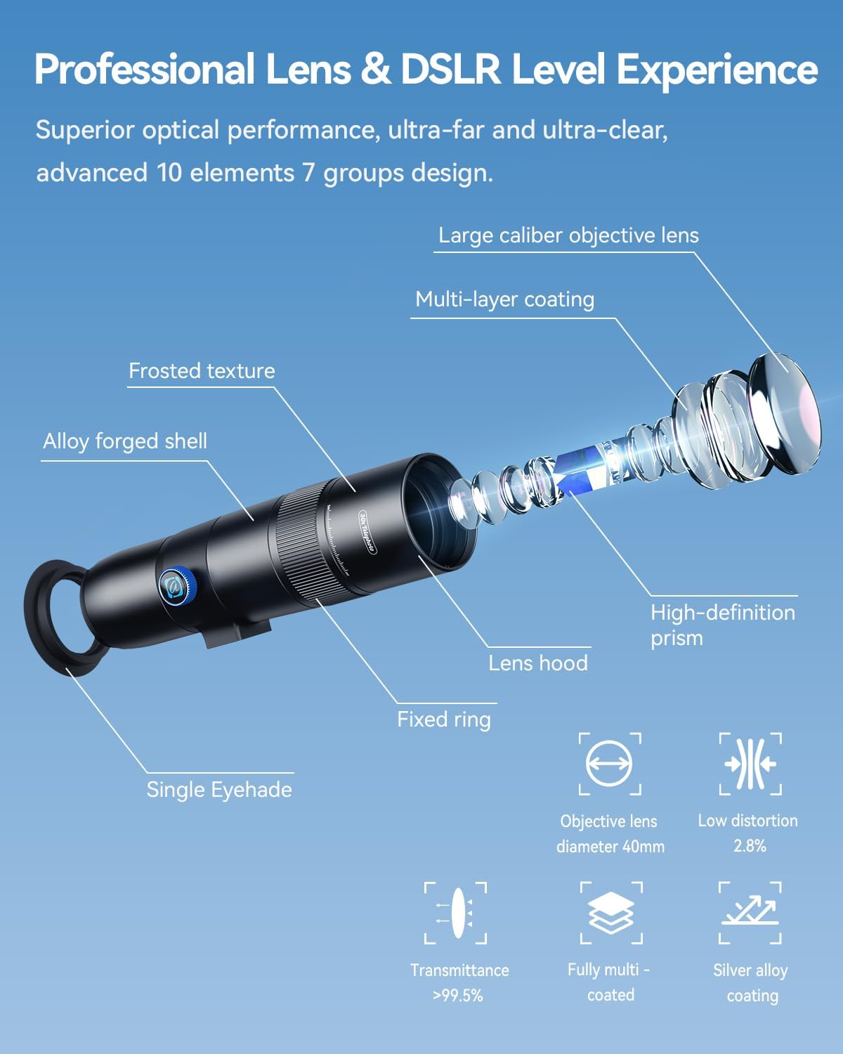 MicroEye High Power 30X HD Telephoto Lens for iPhone Telephoto Lens with Tripod Attachment, for iPhone 16/15/14/13 Pro Max, Samsung, Android Phone and Most Smartphone