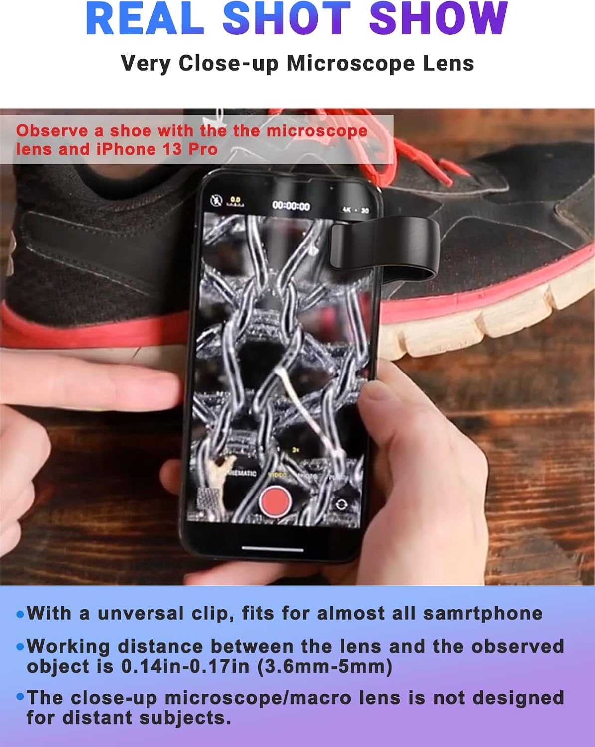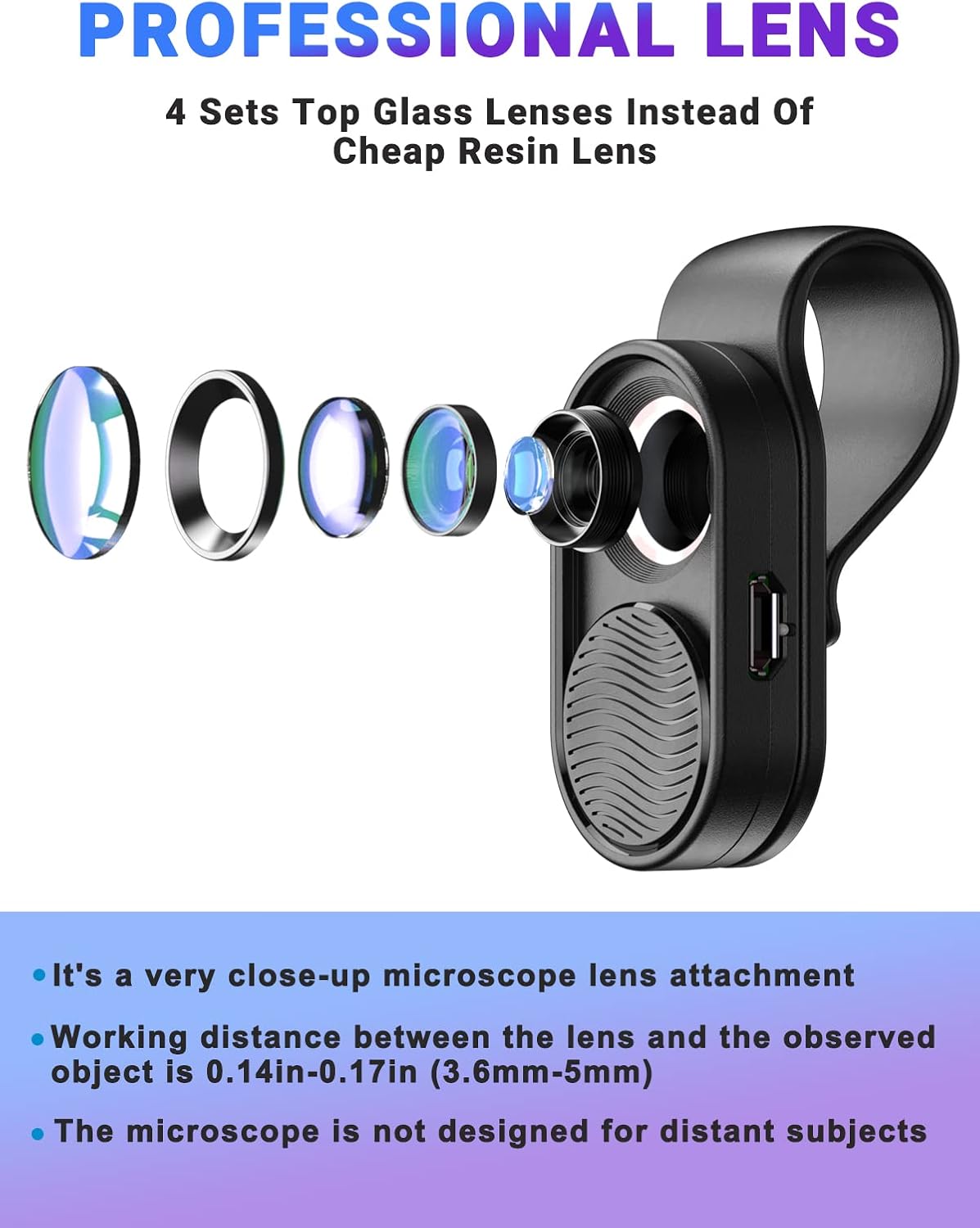 MicroEye Phone Microscope Lens, Nano Zoom 100X Phone Micro Lens for for All Smartphone with LED Light, Pocket Microscope iPhone Camera Lens Attachment Portable Micro Lens for Kids Adults Trichome Coin
