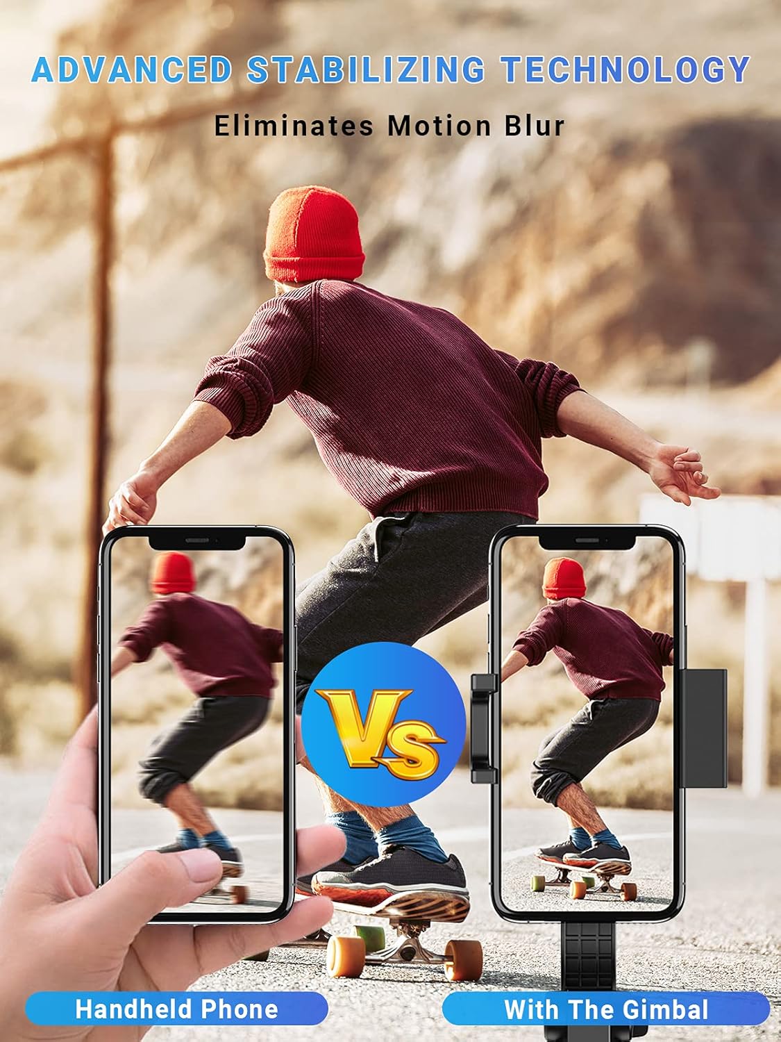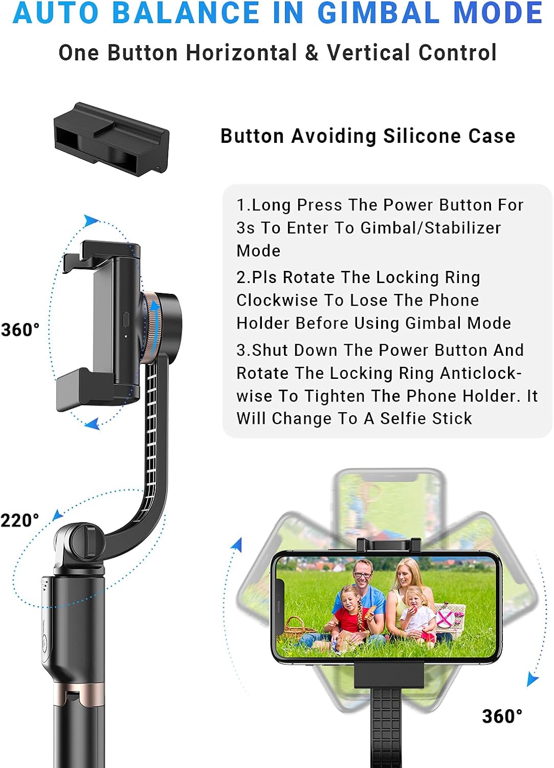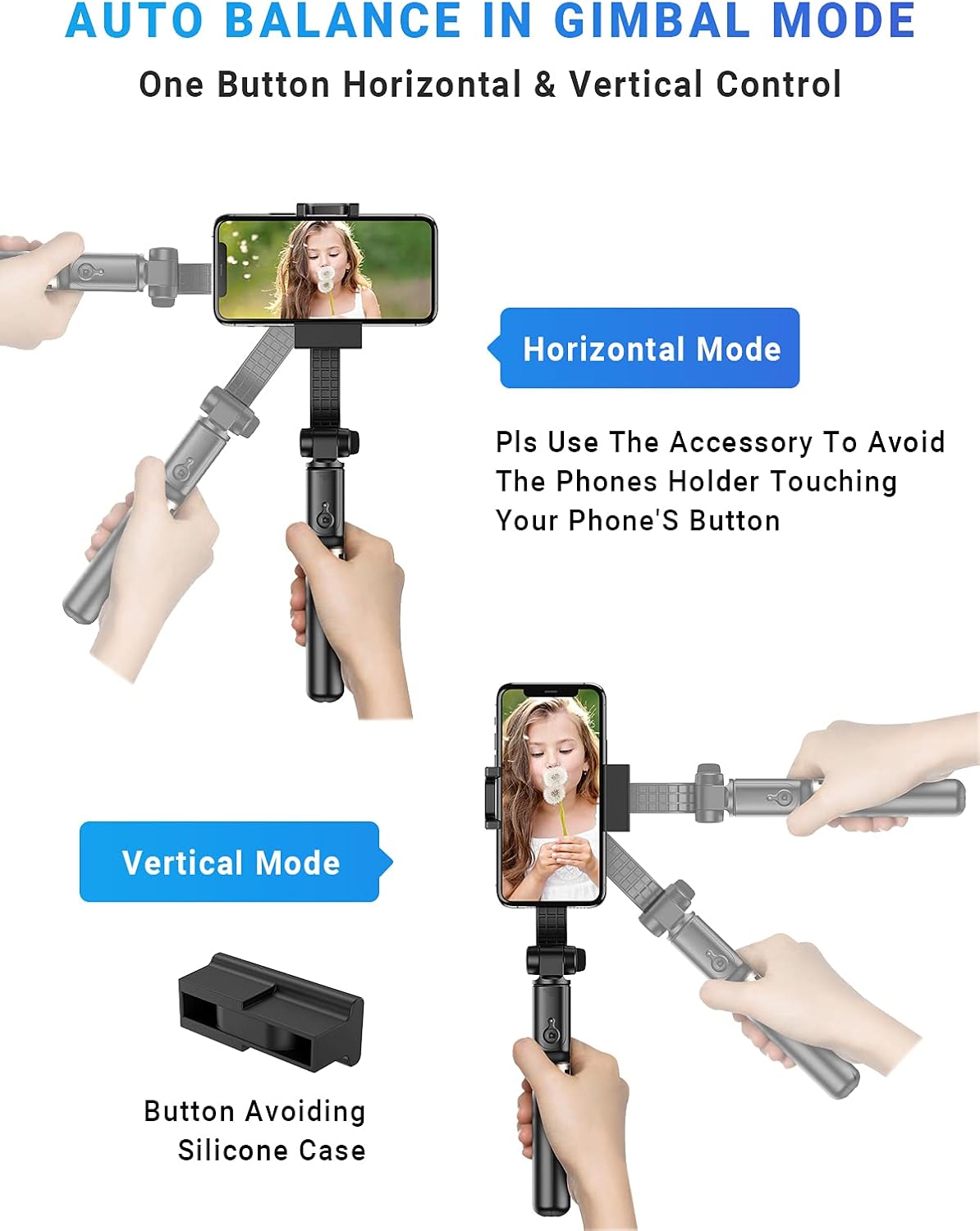 Gimbal Stabilizer For Smartphone, MicroEye 360° Rotation Auto Balance Small Portable Handhold Selfie Stick Tripod With Wireless Remote, 1-Axis Lightweight Extendable Stabilizer Gimble Iphone Phone Gopro
