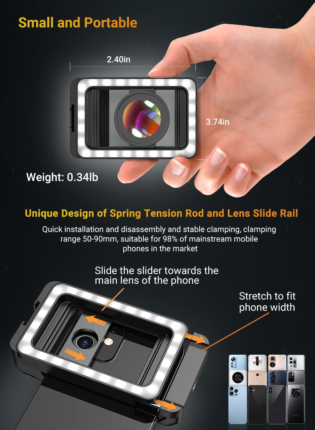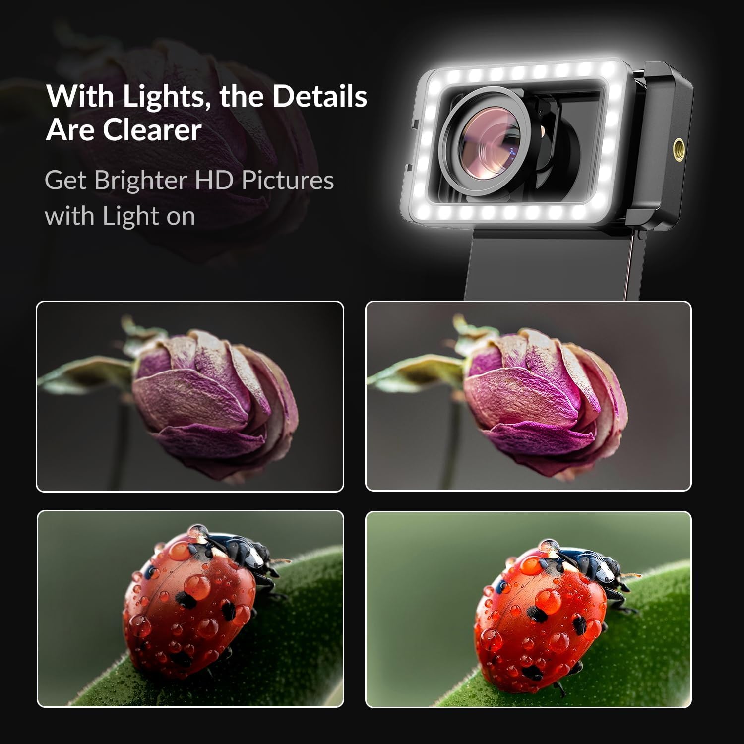 MicroEye 15X Macro Lens for iPhone with LED Fill Light, Samsung, Android Phone, with Universal Lens Clip Attachment (Fits for Almost Smartphone)