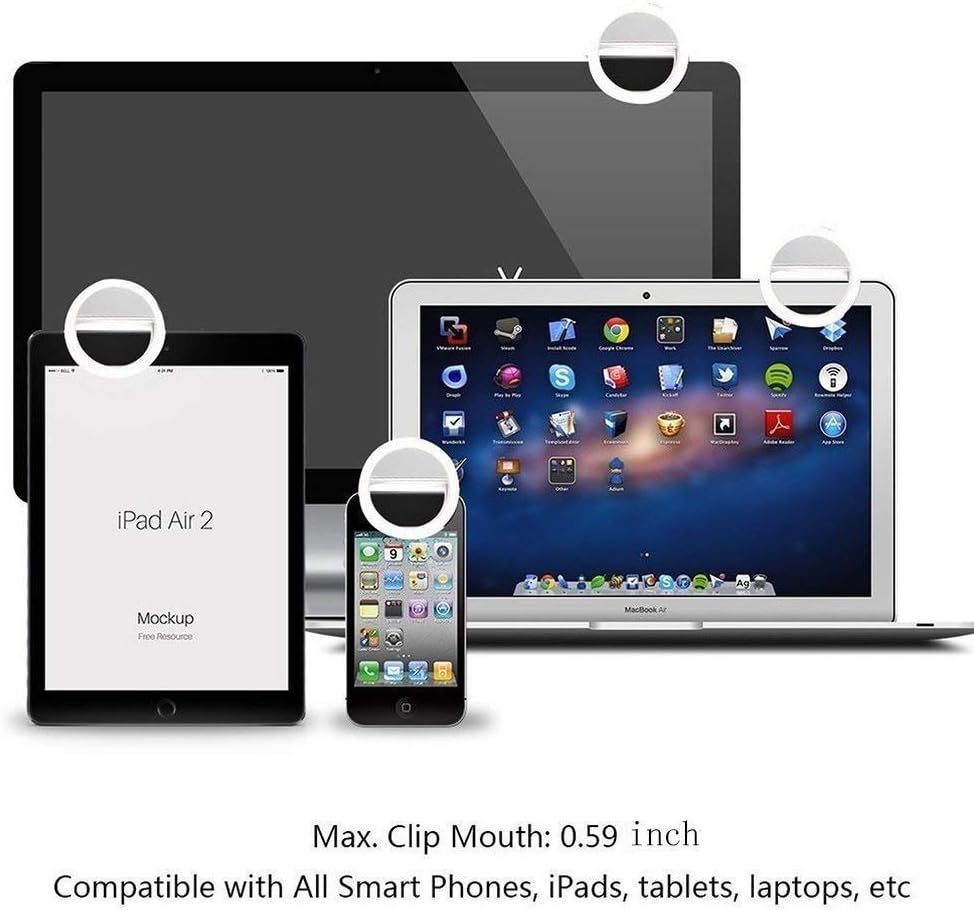 Selfie Ring Light, MicroEye Rechargeable Portable Clip-on Selfie Fill Light with 36 LED for iPhone/Android Smart Phone Photography, Camera Video, Girl Makes up (White)