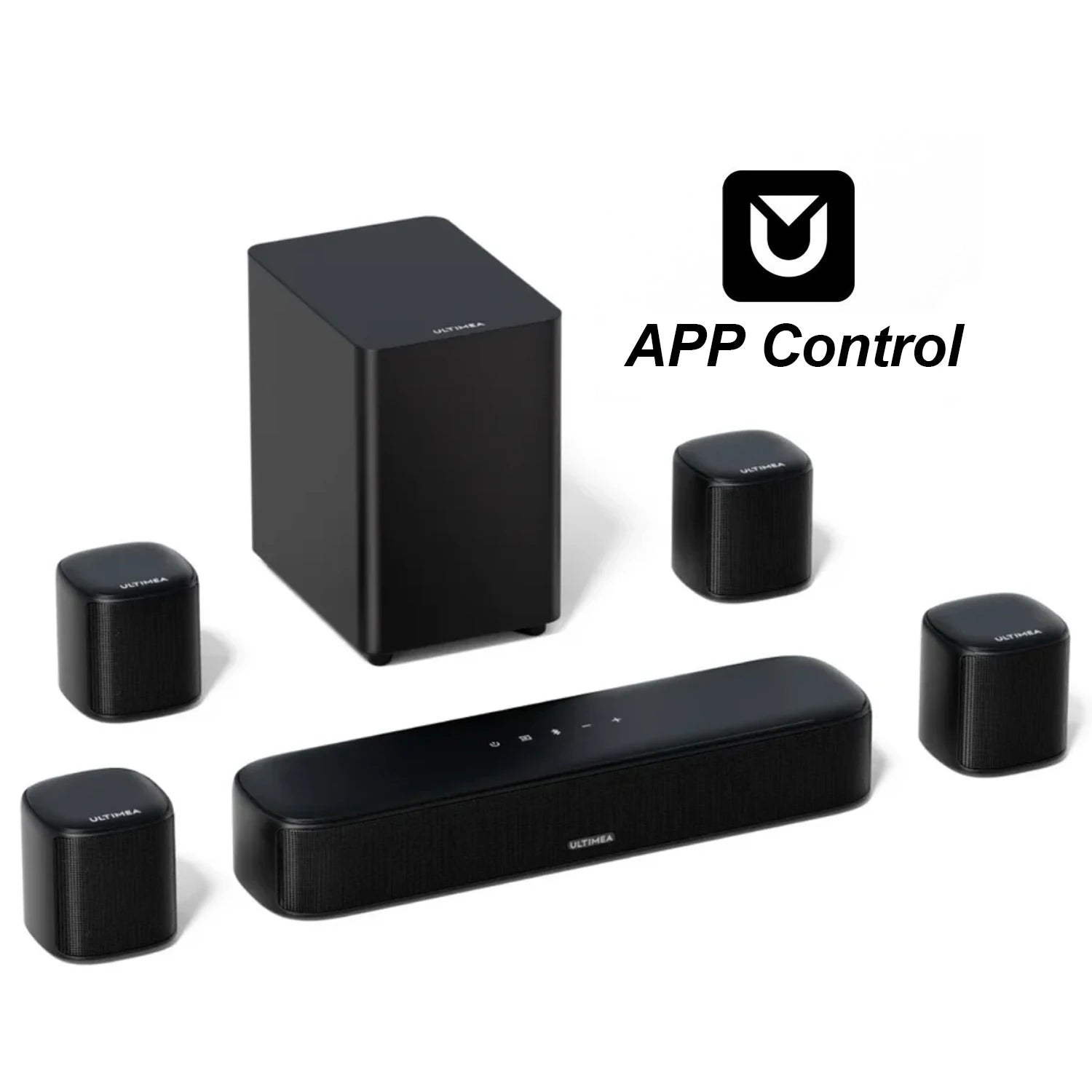 MicroEye 7.1ch Virtual Surround Soundbar, Peak Power 330W, TV Sound Bar with Subwoofer and 4 Surround Speakers, Smart App Control