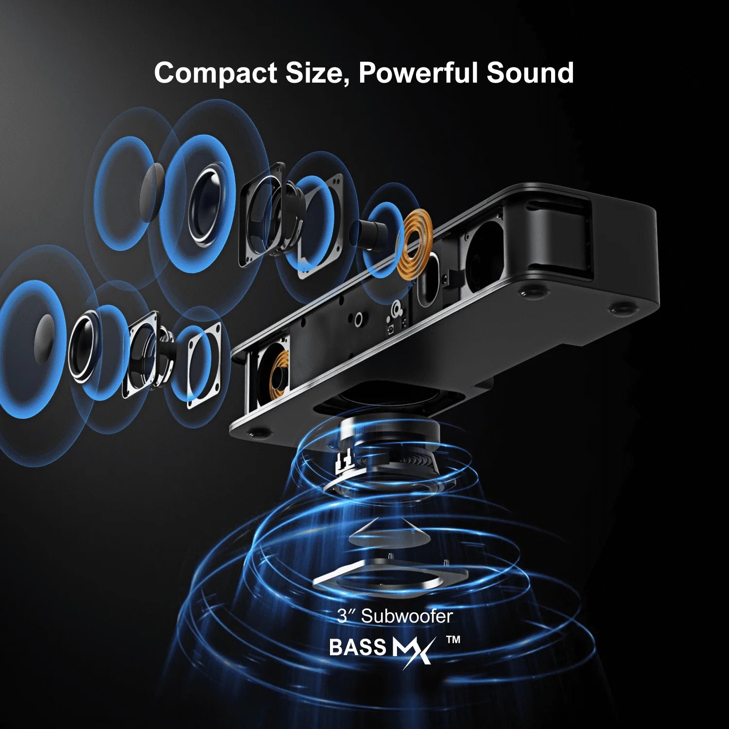 MicroEye Peak Power 120W, 2.1ch Sound Bar for TV, All-in-One PC Soundbar, Built-in Subwoofer, APP Control,Solo B30 Pro Series